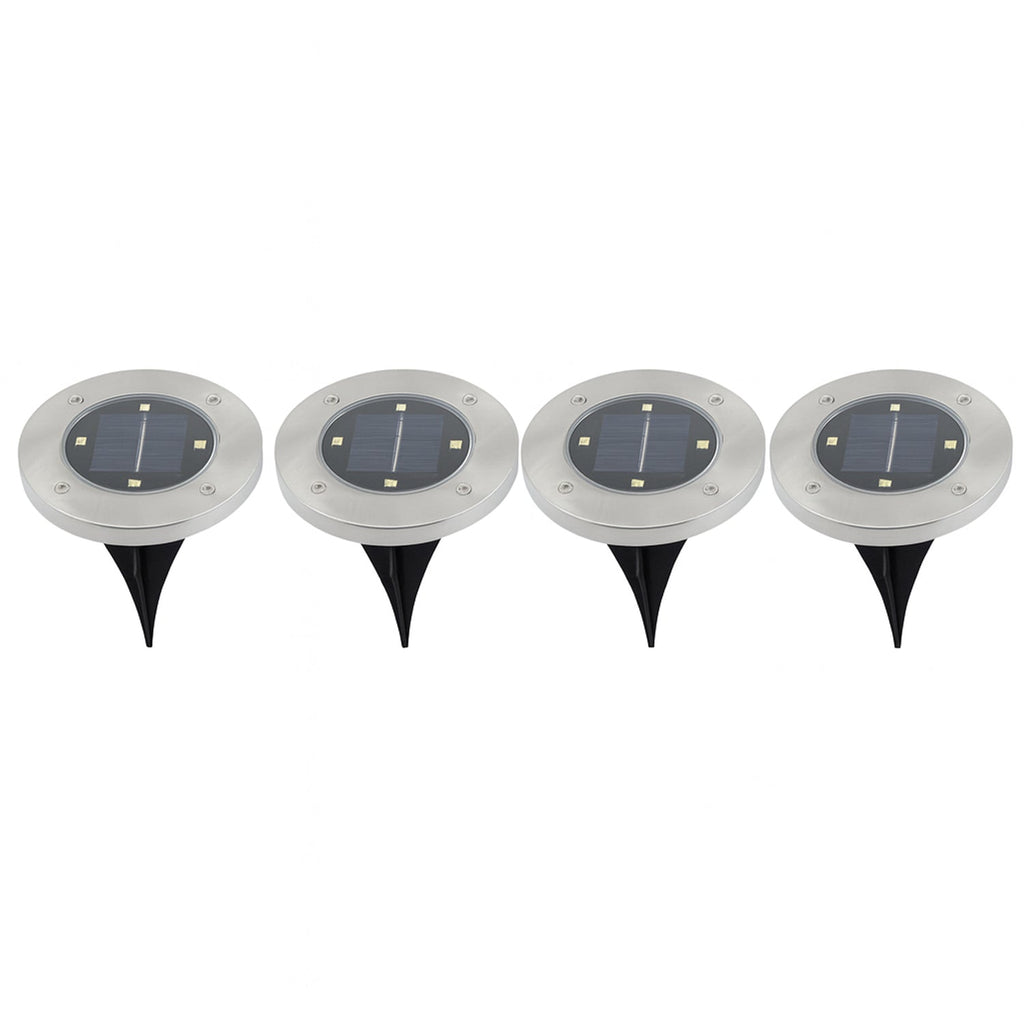 Solar Powered LED Garden Lights – Outdoor Waterproof Pathway & Landscape Lighting for Lawn, Patio, Driveway & Path – Stainless Steel Round Ground Spike Lights – 4 Pcs Set